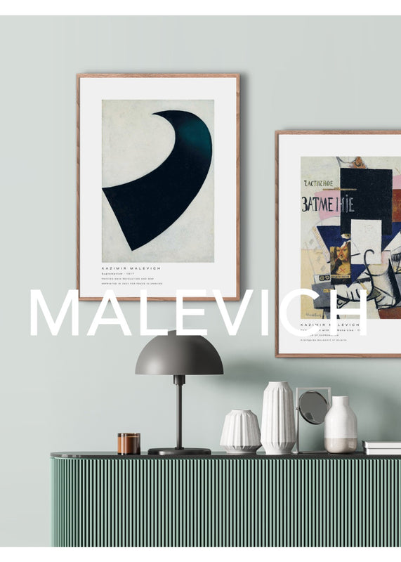 I 1913 grundlagde Kazimir Malevich 'suprematismen' i Rusland, og i 1919 åbnede designskolen Bauhaus i Weimar i Tyskland. Begge bevægelser fik en enorm betydning for den moderne kunst. Disse værker hylder alle drømmen om en frisindet verden midt i et Europa, der var på vej til at blive raseret af krig. Fås i størrelserne 30 x 40 cm og 50 x 70 cm.